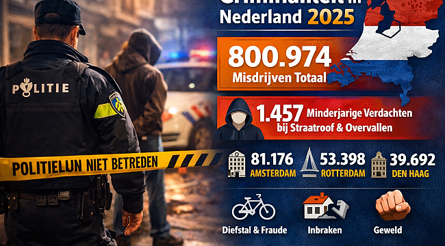 Nederland – Het totaal aantal geregistreerde misdrijven in Nederland is in 2025 vrijwel gelijk gebleven aan het jaar ervoor. In totaal registreerde de politie 800.974 misdrijven, een stijging van 0,6 procent ten opzichte van 2024. Daarmee blijft de criminaliteit op een stabiel niveau. Dat blijkt uit recente cijfers van CBS en de politie.
